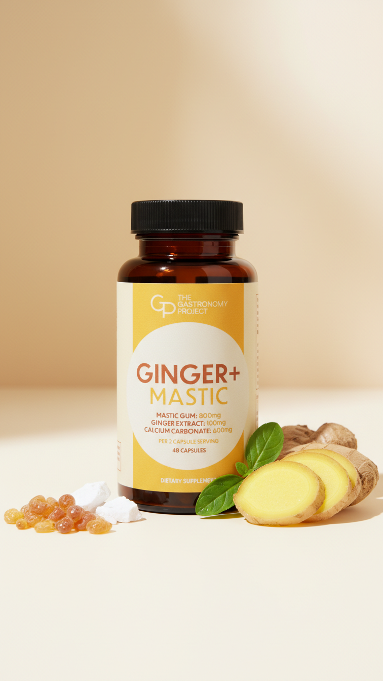GINGER+ Mastic is a physician-created dietary supplement that blends modern clinical insight with time-tested natural ingredients. Unlike single-ingredient supplements or standard antacids, this all-in-one capsule combines mastic gum, ginger root, and calcium carbonate to support balanced digestion from multiple angles. No prescription required.